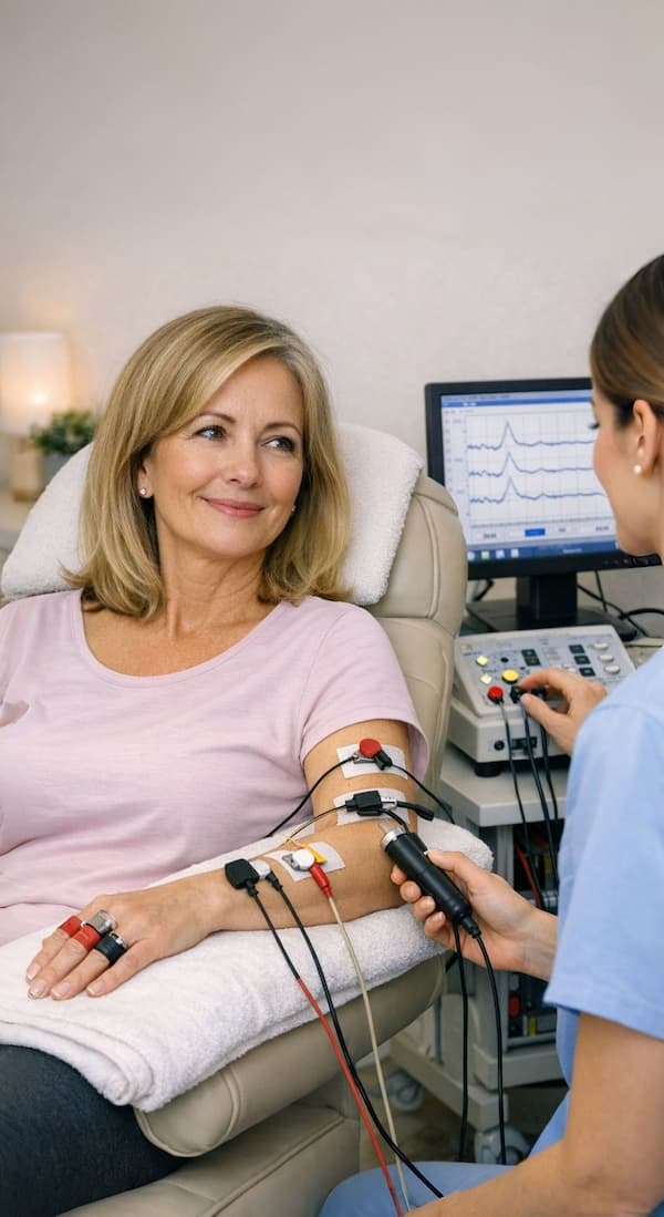L’elettroneurografia è indicata nello studio di sintomi come formicolii, intorpidimento, dolore neuropatico, debolezza muscolare o perdita di forza, ed è particolarmente utile nella diagnosi di neuropatie periferiche, sindromi da intrappolamento nervoso — come la sindrome del tunnel carpale o del canale cubitale —, polineuropatie di diversa origine, neuropatie traumatiche e, in specifici contesti clinici, nel sospetto di interessamento delle radici nervose o di altre patologie del sistema nervoso periferico. Spesso rappresenta una parte essenziale di un più ampio inquadramento neurofisiologico e, quando necessario, può essere integrata con l’elettromiografia per una definizione diagnostica ancora più completa.